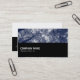 A clear stylish modern business/profile card template with an image or artwork in the top half and a black bottom half. The image in the front top half can also be changed. The reverse side has the same black half footer with a white or light colour top half. Company name, etc on the front with name and other contact details arranged on the back. This card can be customised in a variety of ways.