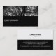 A clear stylish modern business/profile card template with an image or artwork in the top half and a black bottom half. The image in the front top half can also be changed. The reverse side has the same black half footer with a white or light colour top half. Company name, etc on the front with name and other contact details arranged on the back. This card can be customised in a variety of ways.