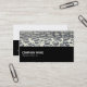A clear stylish modern business/profile card template with an image or artwork in the top half and a black bottom half. The image in the front top half can also be changed. The reverse side has the same black half footer with a white or light colour top half. Company name, etc on the front with name and other contact details arranged on the back. This card can be customised in a variety of ways.