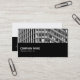 A clear stylish modern business/profile card template with an image or artwork in the top half and a black bottom half. The image in the front top half can also be changed. The reverse side has the same black half footer with a white or light colour top half. Company name, etc on the front with name and other contact details arranged on the back. This card can be customised in a variety of ways.