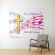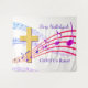 Stylish SING HALLELUJAH CHRIST IS RISEN Easter Tapestry, showing a gold coloured empty cross in amongst colourful music staves. The Easter text appears in a mauve colour. These words will be sung by Christians the world over to celebrate the resurrection of our Lord Jesus Christ at Calvary. This modern Christian Easter tapestry would make a great backdrop in your home or church to celebrate not just Resurrection Sunday but the truth that Christ is risen throughout the year. Choose from a wide selection of faith-based Christian Easter designs on cards, invitations, home decor, clothing and gifts, designed by Berean Designs.