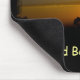 The product itself is good quality and I like the simplistic elegant design. The only criticism I have is that it's not really accurately represented by the picture provided. I thought that the mousepad would be a non-porous or laminate surface and as such the gold writing would actually shine against the soft pink. However the design is printed on a thick fabric surface, so the gold colour is just the shade of gold but doesn't stand out from the pink background. (See picture)