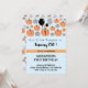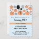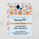 This Halloween 1st birthday invitations in blue and orange with these cute pumpkins in the front and the pumpkin, leaves pattern in the back (fall autumn vibes), is for baby boy / for kids.