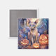 Halloween Abyssinian Cat With Pumpkins Scary Magnet
