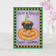 Send Halloween greetings with this card of a cute Affenpinscher puppy in a smiling Jack-o-Lantern. Great for kids of all ages who love Affens and Halloween. Have a Happy HOWL-oween!