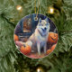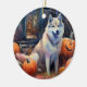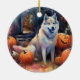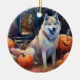 Halloween Alaskan Malamute With Pumpkins Scary Ceramic Ornament