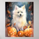 Get your furry friend ready for a howling good time with this adorable dog-inspired Halloween design! Featuring a spooky dog with pumpkins, this design is perfect for pet parents who want to include their four-legged family