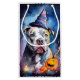 Get your furry friend ready for a howling good time with this adorable dog-inspired Halloween design! Featuring a spooky dog with pumpkins, this design is perfect for pet parents who want to include their four-legged family