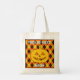 Carry your candy in style with this customisable trick-or-treat bag featuring a festive argyle pattern in black, orange, yellow, and white. At the centre sits a cheerful jack-o’-lantern, adding the perfect spooky touch. Durable and reusable, this bag is great for Halloween night, school events, or festive fall outings. Personalise it with a name or message to make it extra special for your little ghost or ghoul.