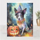 Get your furry friend ready for a howling good time with this adorable dog-inspired Halloween design! Featuring a spooky dog with pumpkins, this design is perfect for pet parents who want to include their four-legged family