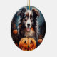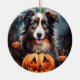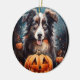 Halloween Australian Shepherd With Pumpkins Scary Ceramic Ornament