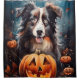 Halloween Australian Shepherd With Pumpkins Scary Shower Curtain
