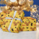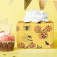 Autumn or Halloween themed wrapping paper with Jack o' lanterns, scary trees, cat, Boo and more.