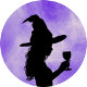Custom witch liquor bottle labels for your Halloween theme bachelorette party. They feature the silhouette of a witch on a smoky background.