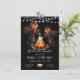 Evening Backyard Halloween Bonfire with a string of twinkle lights and S'mores and Jack-o'-lantern scarecrows invitations. All wording can be changed to fit your needs. Great for a birthday, outdoor party, or camping adventure around Halloween time.