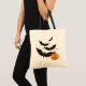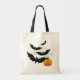 Tote Bag is shown in natural with a Halloween bats print.