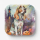 Halloween Basset Hound With Pumpkins Scary Paper Plate