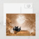 Black kitty cat with silver eyes and bat wings sits in a Halloween coffin under a full moon......actually looking more cuddly than scary cat lovers Halloween postcard