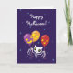 This kawaii bat skeleton flies through the starry Halloween night sky with aid from jack-o-lantern face balloons. Designed by Kaz Foxsen.