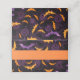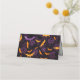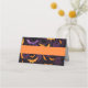 This folded name place card is shown in a festive Halloween bats print.
