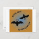Cute little bats wishing a happy 'bats off to Halloween' in this festive digital illustration.