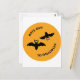 Cute little bats wishing a happy 'bats off to Halloween' in this festive digital illustration.