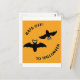 Cute little bats wishing a happy 'bats off to Halloween' in this festive digital illustration.