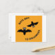 Cute little bats wishing a happy 'bats off to Halloween' in this festive digital illustration.