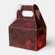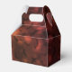 Halloween themed favour box featuring dark orange and red bokeh background and black bats pattern.