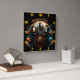 Three playful bears donning witch hats pose against a glowing moon, with a haunted castle backdrop, capturing the essence of Halloween festivities.