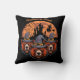 Three fierce bears wearing witches' hats roar against a haunting orange moon, with bats flying and a witch soaring above a spooky silhouette of a castle.