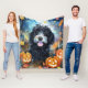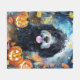 Halloween Bernedoodle With Pumpkins Scary Fleece Blanket