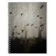 Crows fly erratically in a thick foggy night making the notebook perfect for jotting down your Halloween notes.