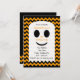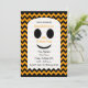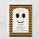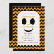 This Halloween birthday party invitation features a cute white ghost on a black and orange chevron background. This fun Halloween design allows you to put all of your Halloween birthday invitation details right inside the ghost. For an extra special touch, some chevron strips also appear on the back of the invitation. This invitation design makes for a very cute way to invite guests to a Halloween Birthday Party! Copyright henishouseofpaper