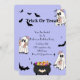 halloween birthday party invitation with ghosts, bats, pumpkins, trick or treat