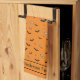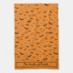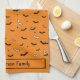 Creepy black and white bats flying in a random pattern cover the kitchen towel's orange surface, with tiny black stars filling the spaces here and there, setting a spooky Halloween mood in your own haunted house kitchen. Available in an array of background colours. And customisable, of course!