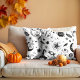 A captivating black and white lineart illustration featuring a mischievous ghost wearing a witch hat, surrounded by Halloween icons like a pumpkin, candy, a bat, and moon stars. This versatile design adds a touch of spooky charm to any product.