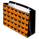 Large Size Party Gift Bag with Black Bat artwork design image by TheFabricSeal at Zazzle is a cute and simple lone black bat with background colours of Halloween Orange and Halloween Purple illustration drawing silhouette style with peekaboo peering khaki green and pumpkin orange eyes looking out for friends and prey alike and a cool dark Halloween night of adventure, goblins, ghouls and ghosts.