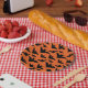 Cool, fun and unique Halloween party supply, gift idea for anyone. Halloween black flying bats spooky silhouette holiday pattern. Hallows Eve flock of black bats. You can customise orange colour.
