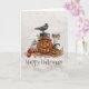 Halloween Black Bird and Pumpkins Greeting Card