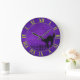 Halloween: Black Cat and Fence Silhouette | Purple Large Clock