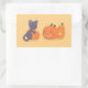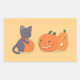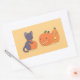 Halloween Black Cat and Pumpkins on Yellow Rectangular Sticker