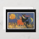 Halloween Black Cat and Witch Postcard