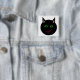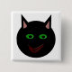 This button features a black cat with pointed ears, bright green eyes and a sly red grin. This creepy kitty is perfect for Halloween or for cat lovers.