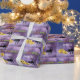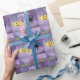This wrapping paper is designed for the child celebrating a birthday near Halloween. The design features watercolor graphics of pumpkins and a cute black cat on the watercolor purple background.