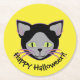 Perfect for your Halloween party, this coaster design features a cute graphic black cat with green eyes along with easy to customise text.