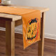 Add this hauntingly cute table runner to your Holiday decor. A little black cat peeks out from a happy smiling Halloween pumpkin