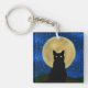 Halloween Black Cat Moonlit Silhouette Key Ring