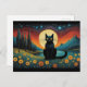 Halloween Black Cat Mountain Lakeside Full Moon Postcard