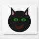 This mousepad features a black cat with pointed ears, bright green eyes and a sly red grin. This creepy kitty is perfect for Halloween or for cat lovers.